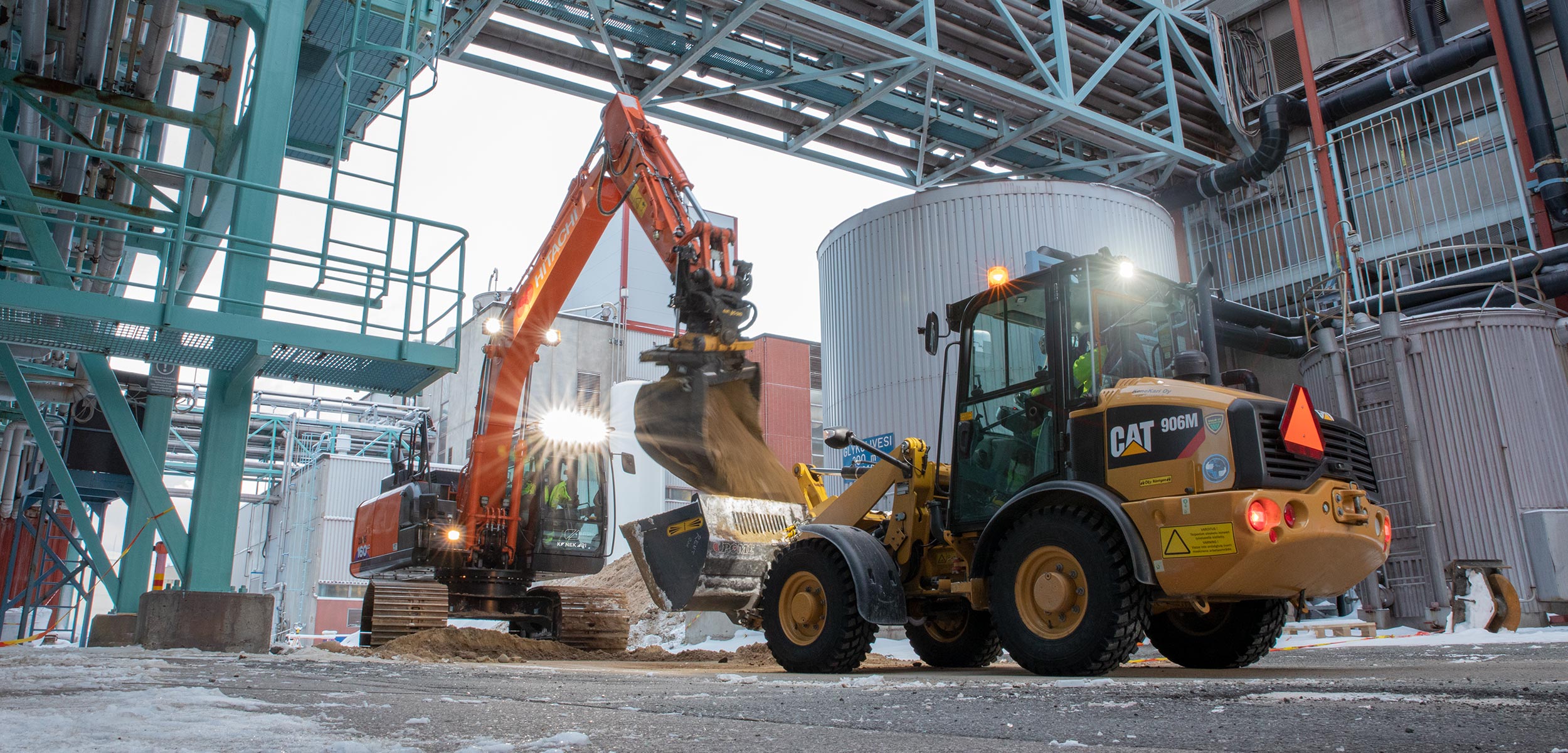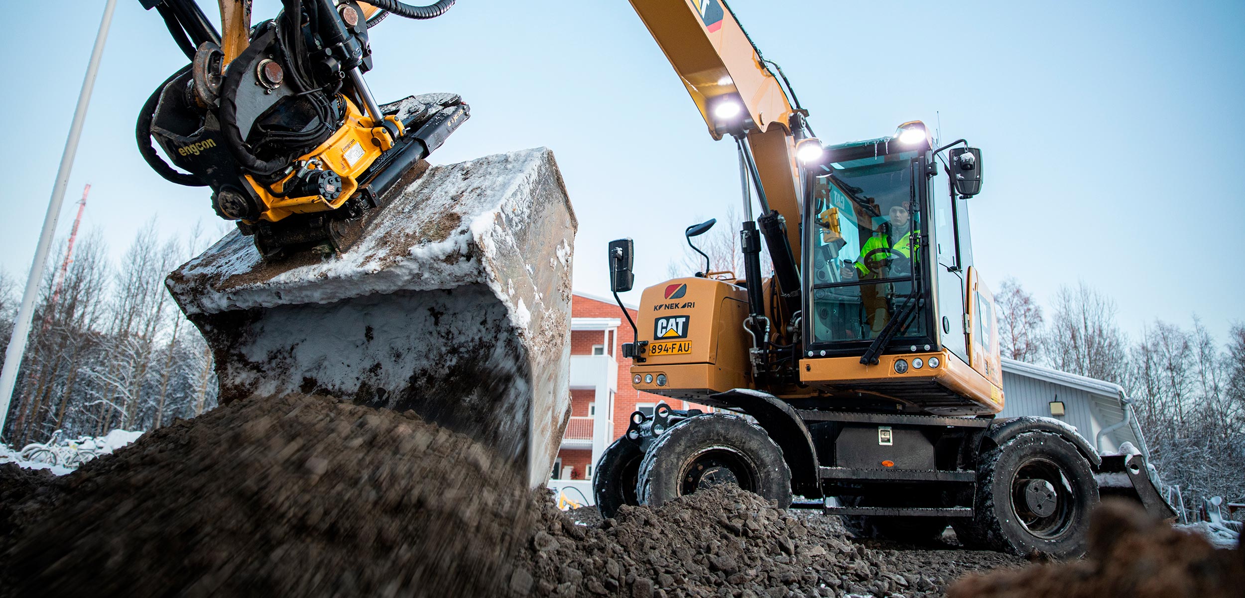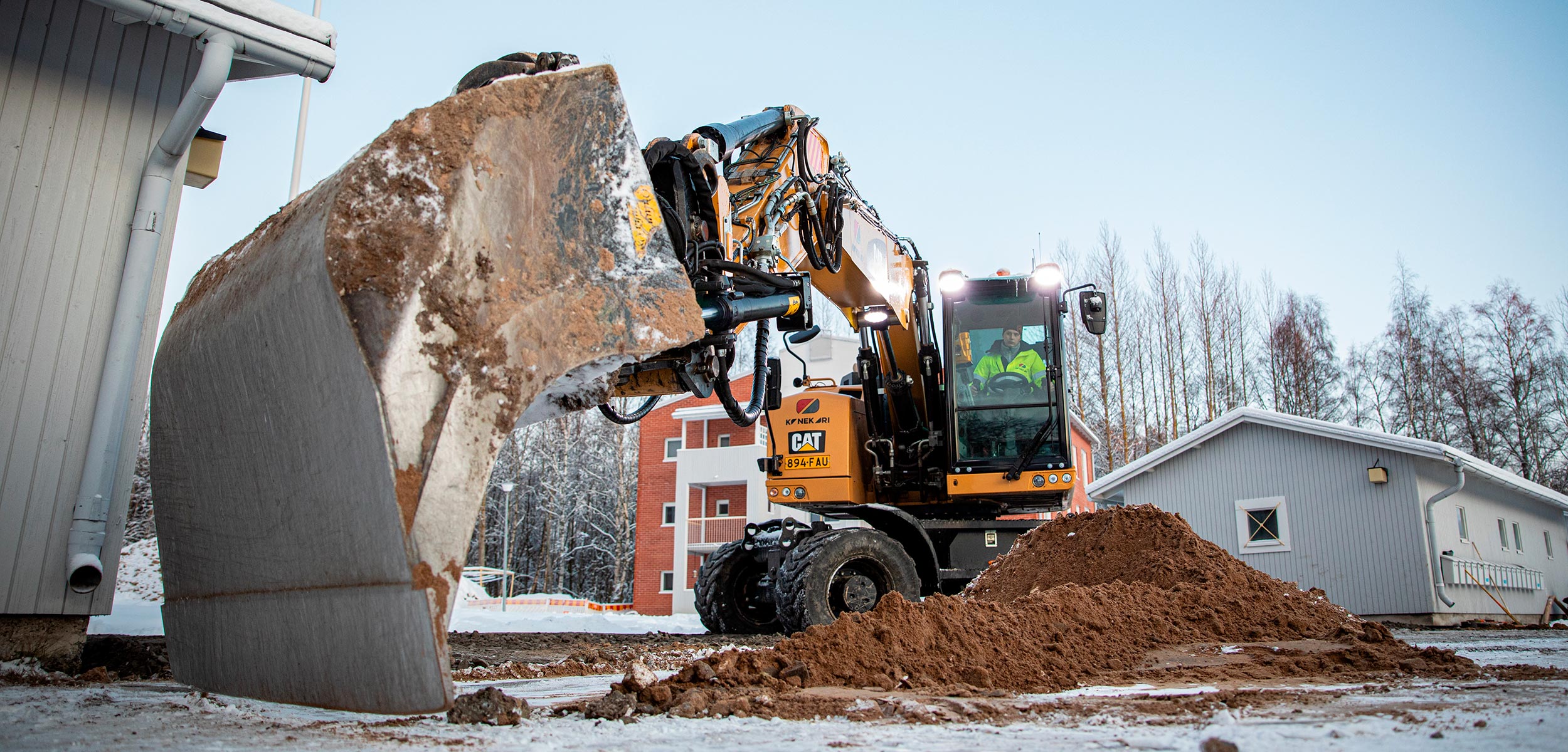 Työmailla touhuaa nyt vähäpäästöisiä Catepillar laitteita. Otamme toiminnassamme huomioon myös ilmastolliset asiat.